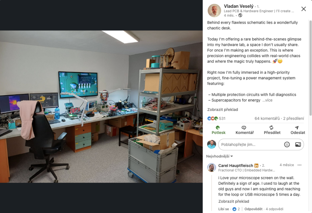 Potřeboval pomoct s plánováním a tvorbou příspěvků, zvýšit jejich dosah a především na LinkedInu získat nové klienty. S touto představou mě v létě 2025 oslovil vývojář hardwaru Vladan Veselý. Výrazný posun Vladan začal vnímat už po 3 měsících.